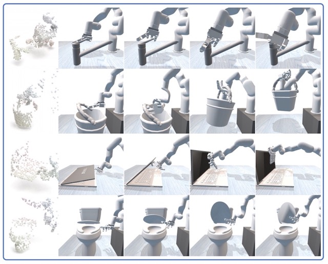 We experiment with extensive benchmark methods that learn category-level manipulation policy on seen objects. We evaluate the policies’ generalizability on a collection of unseen objects, as well as their robustness to camera viewpoint change.