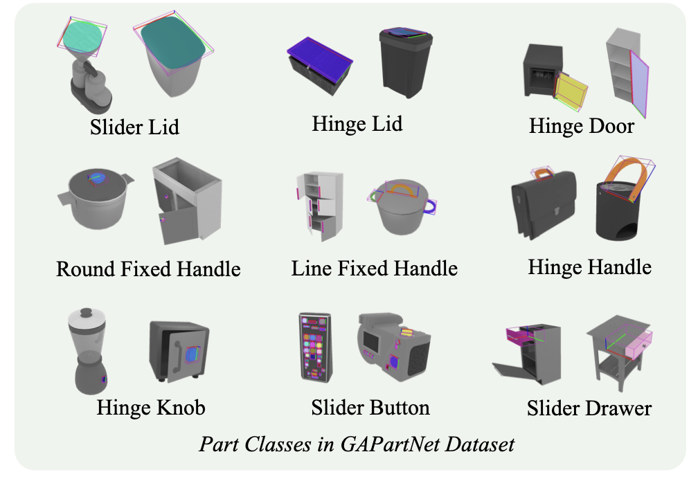 and Actionable Parts, and present GAPartNet, a large-scale interactive dataset with rich part annotations.